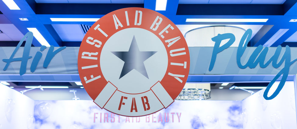 The sky was the limit for this booth. First Aid Beauty was featuring a product line that bolstered light weight applications.